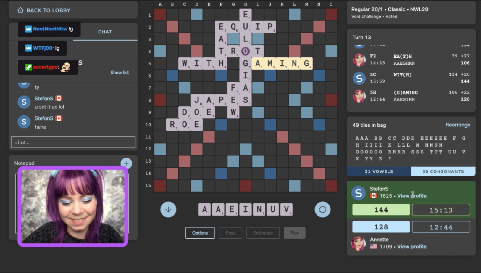 Copyright © 2025 NASPA All rights reserved. SCRABBLE is a trademark of Hasbro, Inc. in the USA and Canada, and of Mattel, Inc. elsewhere. NASPA and its activities are neither endorsed by nor affiliated with Hasbro or Mattel. For more information about NASPA or for comments or issues with this page, please email us.